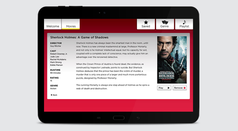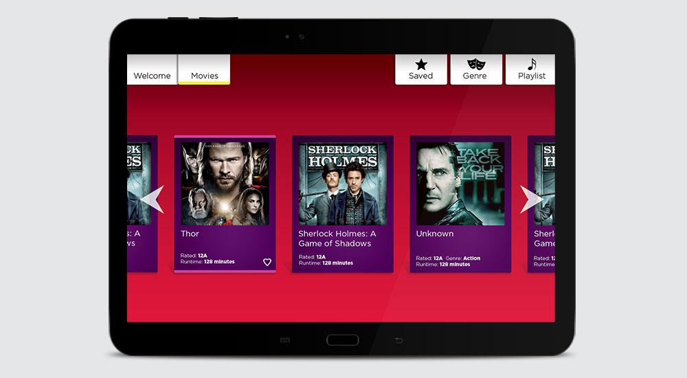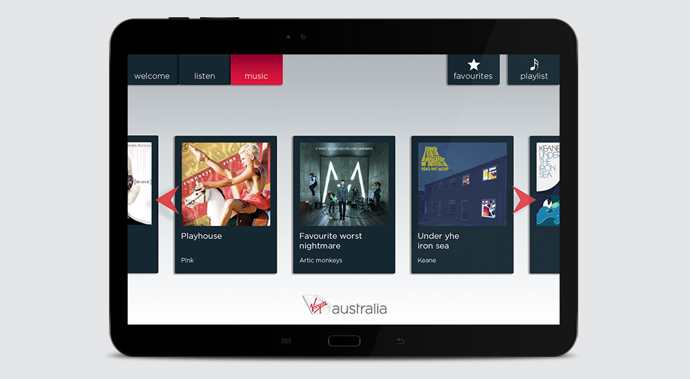 I worked with Virgin Atlantic and Virgin Australia Airlines and Mezzo global, who specialise in the development and integration of software for the travel industry on this project. The brief was to re-brand the UI of Mezzo's in-flight entertainment (IFE) system app for Virgin Altlantic and Australia, adhearing to Virgin's brand guidelines, and create UI elements that matched their look and feel.